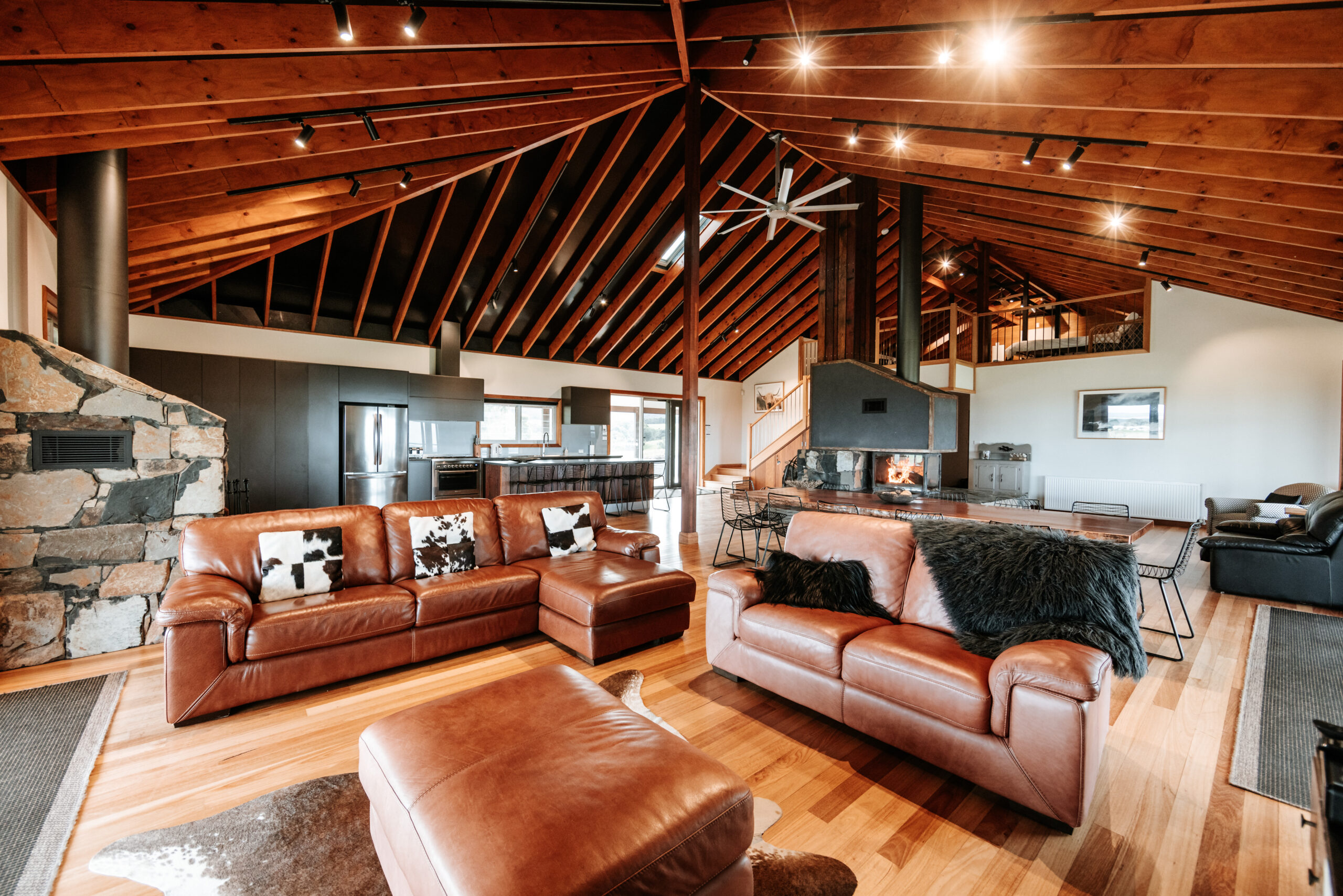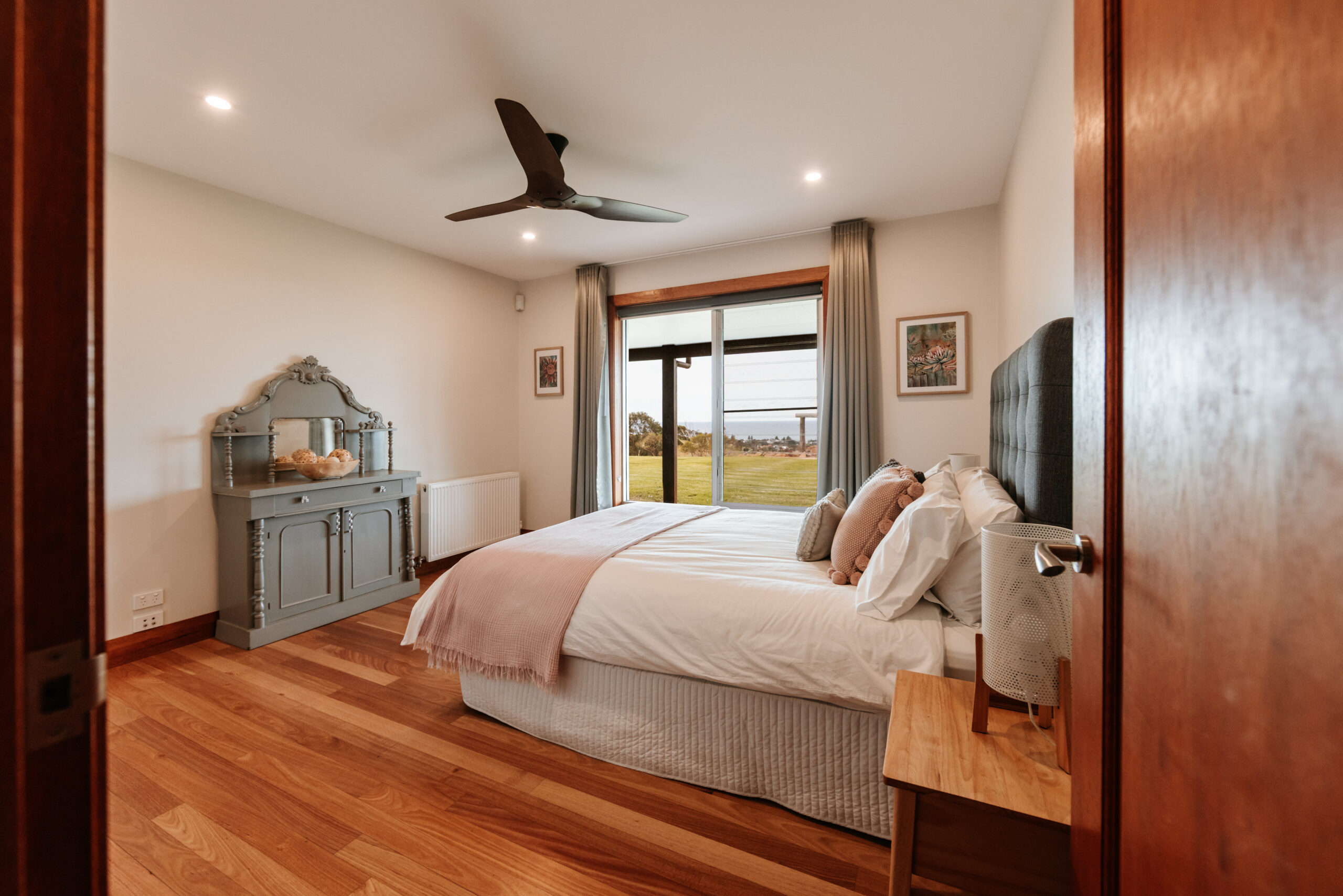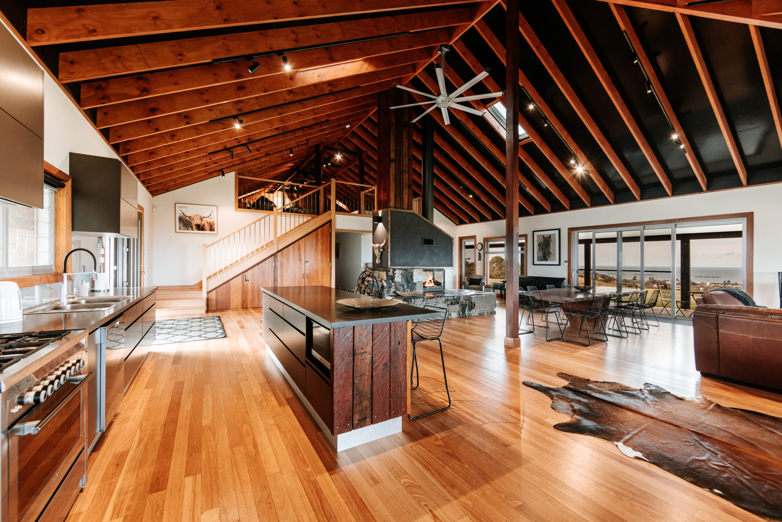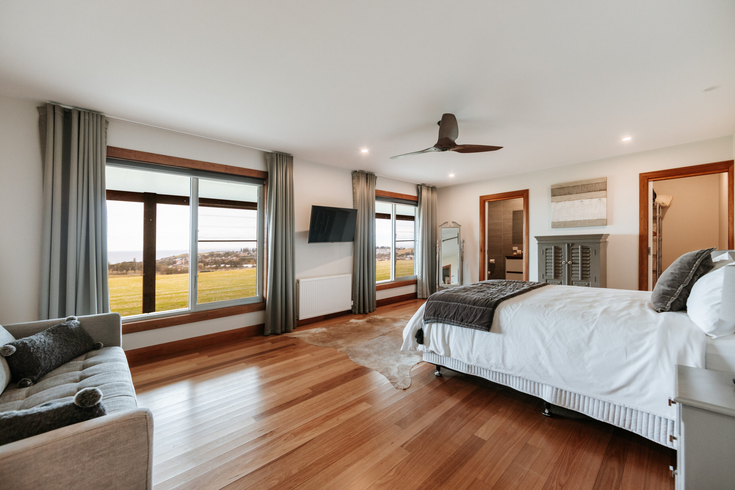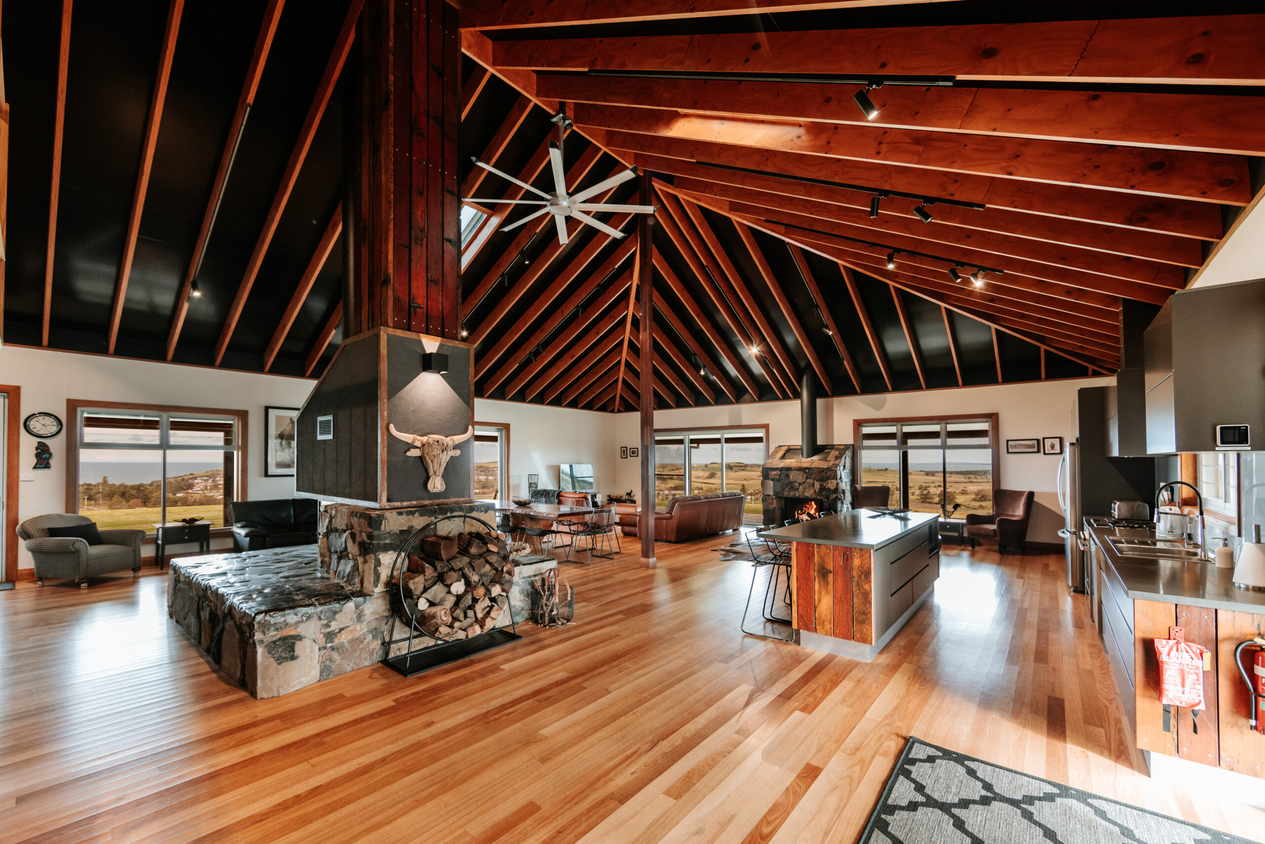 Gorgeous country house situated on 60 acres of manicured farmland with ocean views. This six bedroom home features an open plan kitchen, two combustable fireplaces a large BBQ and fire pit, a weatherproof outdoor entertaining area and ample parking