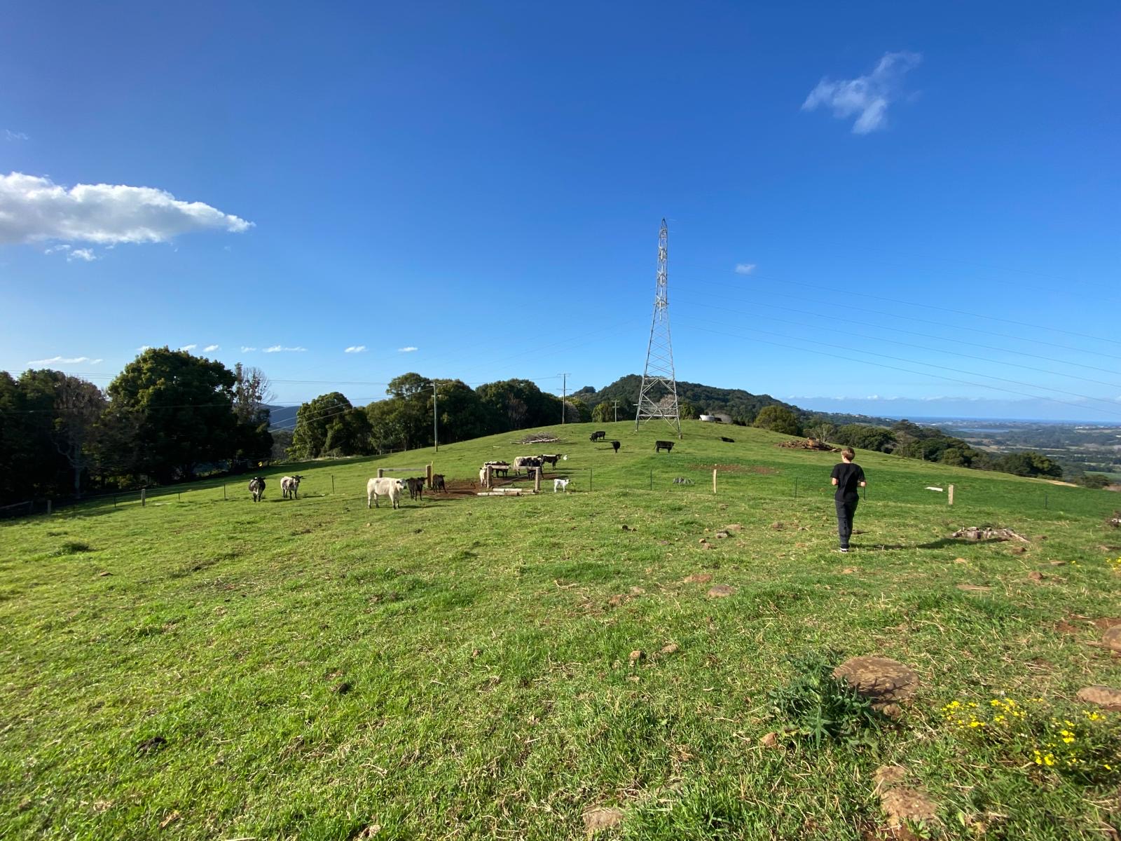 86 Acres of open grassy fields, regrowth rainforest with 360 degree ocean and hinterland views, a creek with swimming holes, volcanic rock formations and a large fig tree. Dual road access, large power stands and gated gravel driveway.