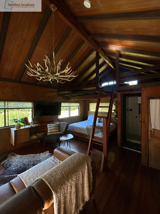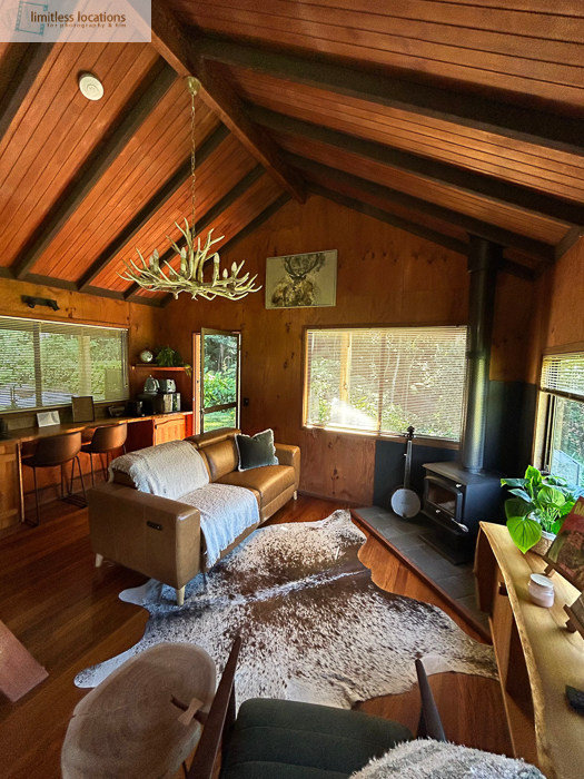 A Beautiful Cabin, with tastefully designed interior, panoramic hinterland views, lush gardens and cascading creek. The cabin boasts private decks, fireplaces and outdoor bathtubs.